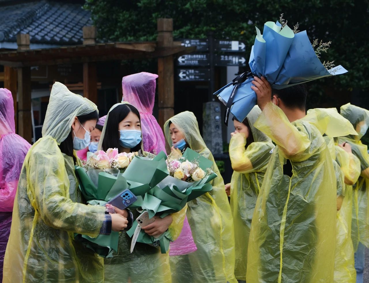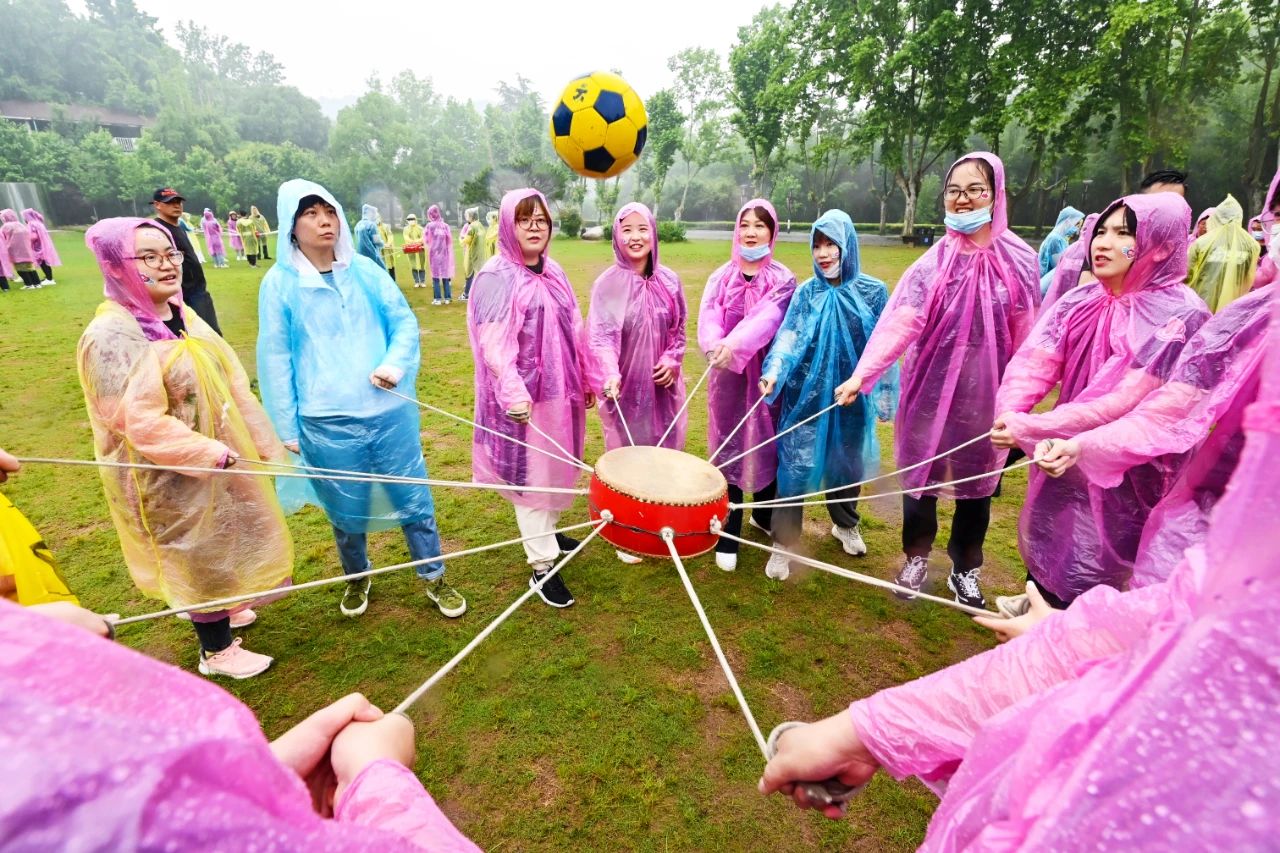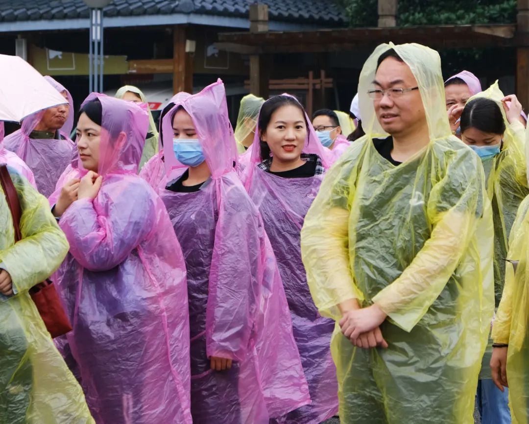 活動(dòng)當(dāng)天雖當(dāng)天上午持續(xù)陰雨連綿,但是出游的同事們并未停下腳步,路途大巴上交談甚歡載歌載舞,欣喜之情溢于言表,穿上花花綠綠的雨衣在雨霧中穿行,在東湖磨山水墨畫一般的景色中劃出一條彩色的長線,亦是一道別樣的風(fēng)景。