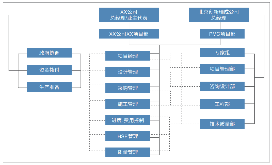 PMC模式是國(guó)際通行的現(xiàn)代工程建設(shè)項(xiàng)目管理模式,旨在規(guī)范、提升業(yè)主(建設(shè)單位)方的專(zhuān)業(yè)化工程項(xiàng)目管理水平。PMC模式是業(yè)主聘用專(zhuān)業(yè)化項(xiàng)目管理公司作為項(xiàng)目管理承包商代表業(yè)主或協(xié)助業(yè)主組織開(kāi)展項(xiàng)目的工程建設(shè)活動(dòng),實(shí)施專(zhuān)業(yè)化、科學(xué)化的項(xiàng)目管理,以有效實(shí)現(xiàn)工程項(xiàng)目的各項(xiàng)建設(shè)目標(biāo)。業(yè)主則以項(xiàng)目投資主體的身份,從建設(shè)目標(biāo)、資金籌措、政府協(xié)調(diào)等整體上監(jiān)督和控制整個(gè)項(xiàng)目,而不具體管理業(yè)主本身并非專(zhuān)長(zhǎng)的一些項(xiàng)目管理內(nèi)容。必要時(shí),業(yè)主委托監(jiān)理機(jī)構(gòu)在PMC管理下對(duì)工程現(xiàn)場(chǎng)施工進(jìn)行監(jiān)理。IPMT(Integrated Project Management Team)是PMC的演變形式,中文意為“聯(lián)合項(xiàng)目管理組”,又稱(chēng)“一體化項(xiàng)目管理團(tuán)隊(duì)”,是指項(xiàng)目管理公司派出一批項(xiàng)目管理專(zhuān)業(yè)人員與業(yè)主的工程建設(shè)管理人員組成一體化項(xiàng)目管理團(tuán)隊(duì)(IPMT),IPMT代表業(yè)主對(duì)項(xiàng)目建設(shè)全過(guò)程實(shí)施管理(圖1)。▲圖1 PMC/IPMT模式運(yùn)行結(jié)構(gòu)圖