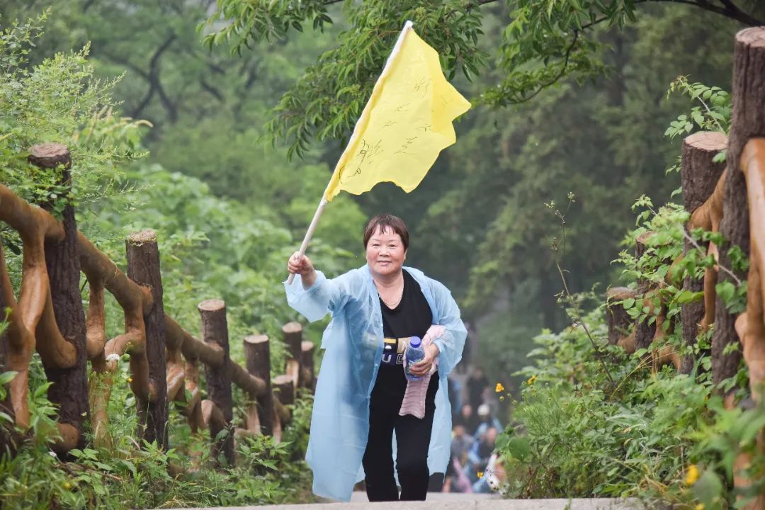 不一會(huì)兒的功夫,雨越下越大,一群舍不得下山的人還在努力拍照。