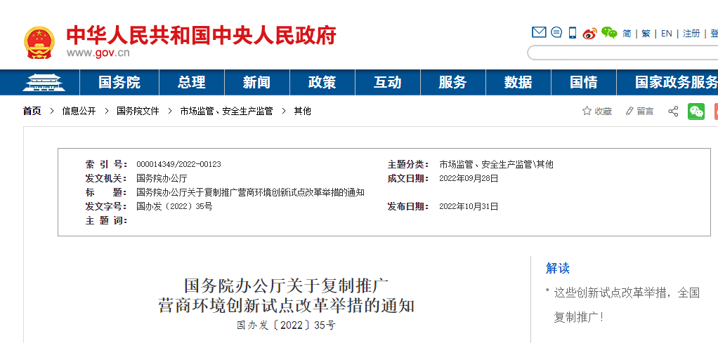 近日,國務院辦公廳發(fā)布關(guān)于復制推廣營商環(huán)境創(chuàng)新試點改革舉措的通知。一是進一步破除區(qū)域分割和地方保護等不合理限制,“清除招投標和政府采購領(lǐng)域?qū)ν獾仄髽I(yè)設(shè)置的隱性門檻和壁壘”,二是健全更加開放透明、規(guī)范高效的市場主體準入和退出機制,三是持續(xù)提升投資和建設(shè)便利度,“推進社會投資項目‘用地清單制’改革”、“分階段整合相關(guān)測繪測量事項”、“推行水電氣暖等市政接入工程涉及的行政審批在線并聯(lián)辦理”、“開展聯(lián)合驗收‘一口受理’”、“進一步優(yōu)化工程建設(shè)項目聯(lián)合驗收方式”、“簡化實行聯(lián)合驗收的工程建設(shè)項目竣工驗收備案手續(xù)”、“對已滿足使用功能的單位工程開展單獨竣工驗收”等。四是更好支持市場主體創(chuàng)新發(fā)展,五是持續(xù)提升跨境貿(mào)易便利化水平,六是維護公平競爭秩序,七是進一步加強和創(chuàng)新監(jiān)管,八是依法保護各類市場主體產(chǎn)權(quán)和合法權(quán)益,九是優(yōu)化經(jīng)常性涉企服務。