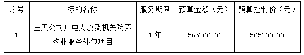 1、采購項目名稱:星天公司廣電大廈及機關(guān)院落物業(yè)服務(wù)外包項目