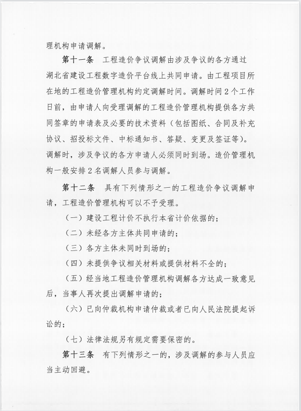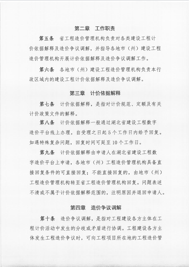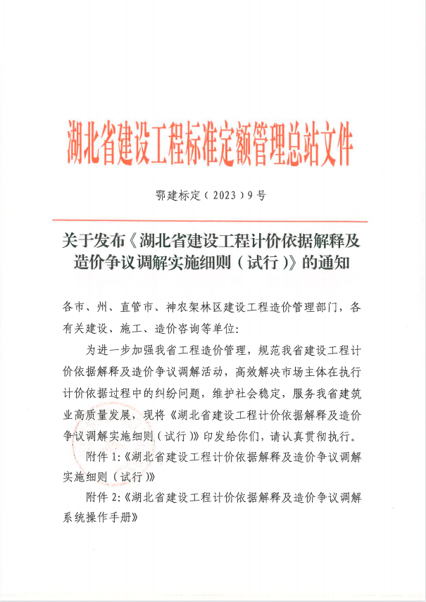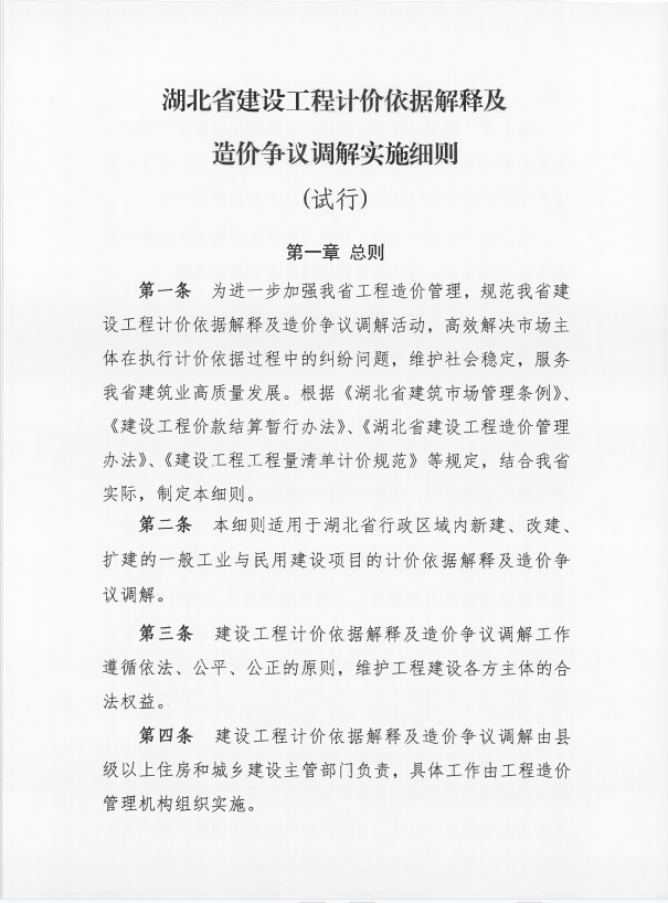 《湖北省建設工程計價依據解釋及造價爭議調解實施細則(試行)》
