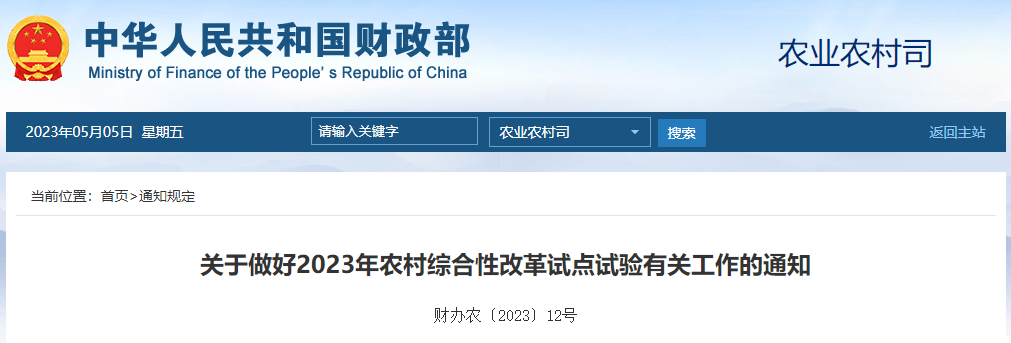 為深入貫徹黨的二十大精神,認真落實2023年中央一號文件“深化農村改革”、“深入推進農村綜合改革試點示范”的任務要求和中共中央、國務院印發的《數字中國建設整體布局規劃》部署,在總結前期試點經驗的基礎上,2023年中央財政繼續支持實施并啟動新的農村綜合性改革試點試驗(以下簡稱試點)?,F就有關工作通知如下。