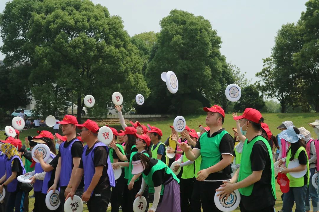 在教練的帶領下,大家來到戶外場地開始實地開展飛盤競賽。飛盤練習場上,有迅速上手并漸入佳境的小伙伴,有互相鼓勵對方說“沒關系,再試一次” 的組隊搭檔,也有時不時傳來歡聲笑語的同事