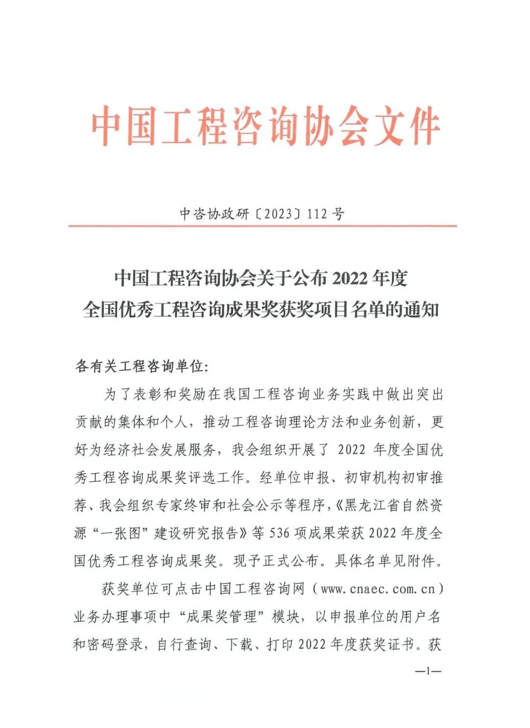 “全國優秀工程咨詢成果獎”是中國工程咨詢協會組織的全國性咨詢成果評獎,旨在表彰和獎勵在我國工程咨詢業務實踐中做出突出貢獻的集體和個人,推動工程咨詢理論方法和業務創新,更好為經濟社會發展服務。