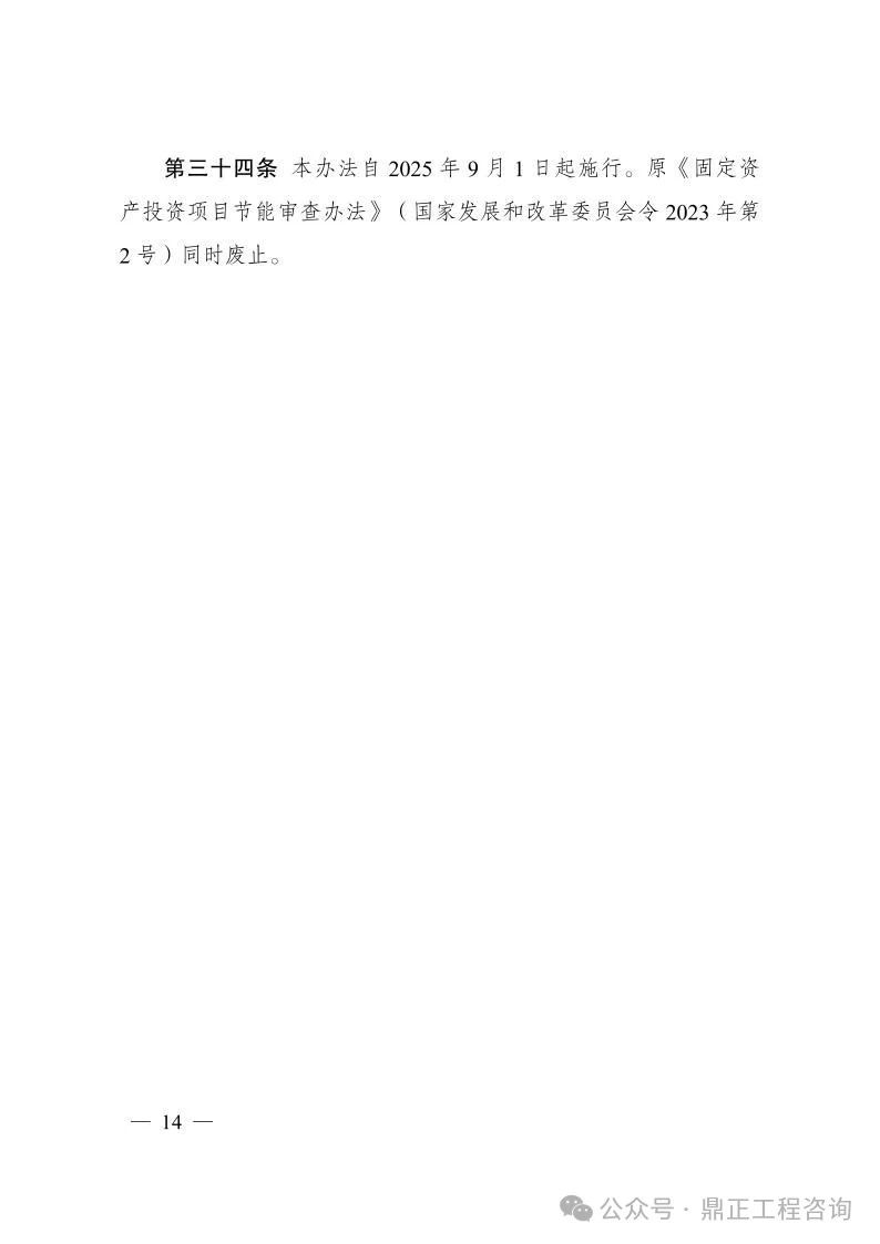 國家發展改革委修訂印發《固定資產投資項目節能審查和碳排放評價辦法》,自2025年9月1日起施行!