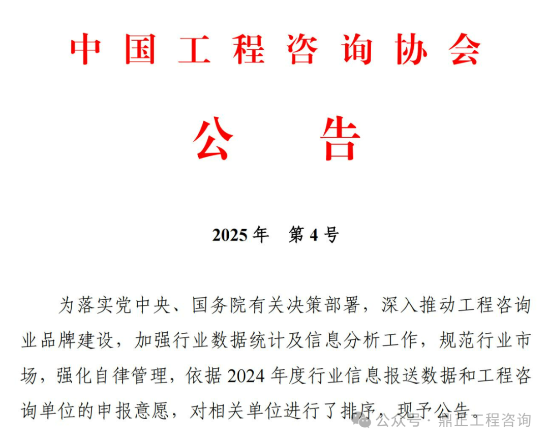 為進一步推動工程咨詢行業(yè)品牌建設,規(guī)范行業(yè)行為、提高自律管理,8月21日,中國工程咨詢協(xié)會在官網(wǎng)發(fā)布了關于2024年度工程咨詢單位排序的公告。鼎正憑借穩(wěn)健的經營實力和綜合表現(xiàn),同時榮登兩項百強榜單,位列“2024工程咨詢單位營業(yè)收入中型企業(yè)100強”第57位,以及“2024工程咨詢單位民營企業(yè)營業(yè)收入100強”第71位!