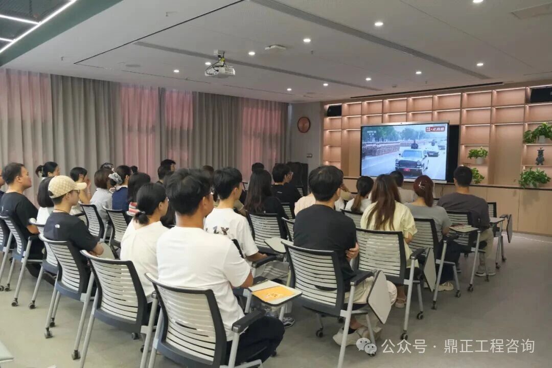 9月3日上午,紀念中國人民抗日戰爭暨世界反法西斯戰爭勝利80周年大會在北京天安門廣場隆重舉行。鼎正組織全體同事集中觀看紀念中國人民抗日戰爭暨世界反法西斯戰爭勝利80周年閱兵儀式直播,共同見證這一莊嚴而振奮人心的歷史時刻。