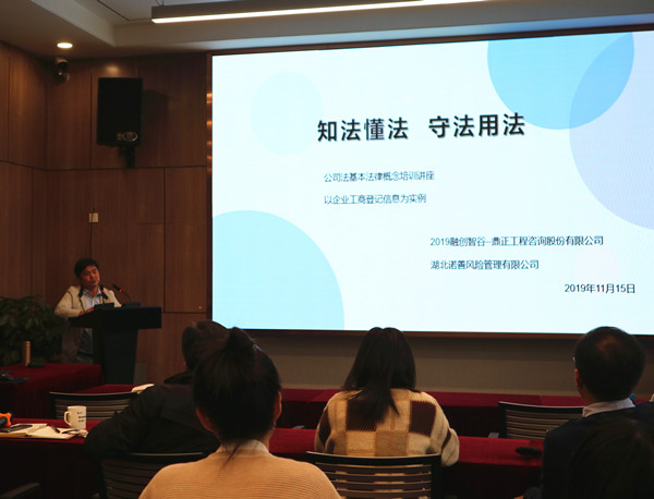 11月15日下午,我司組織開展了2019 年公司法概論與風(fēng)險防控知識培訓(xùn)。本次培訓(xùn)邀請湖北諾善風(fēng)險管理有限公司王振宇律師馮美淵律師就《公司法》實務(wù)知識進行講解,公司董事長王雁然副總經(jīng)理毛迎霞技術(shù)總監(jiān)朱立冬副總經(jīng)理姚建功等領(lǐng)導(dǎo)及各部門中層管理人員、企業(yè)發(fā)展中心、行政中心全體成員參加了本次培訓(xùn),各分公司同事遠(yuǎn)程同步參與學(xué)習(xí)。
