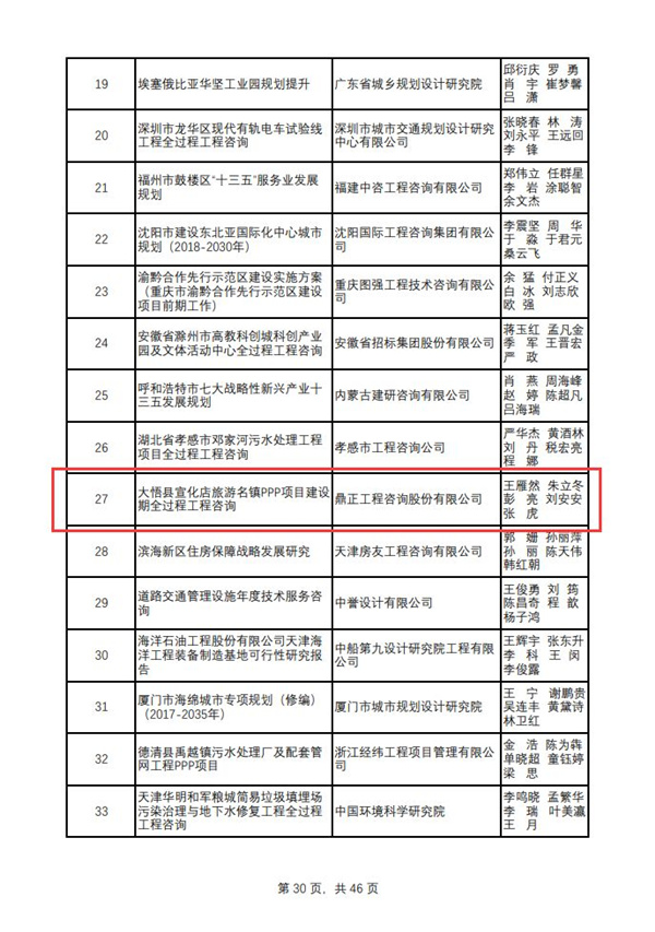 2019年12月27日,中國(guó)工程咨詢協(xié)會(huì)公布了“2018年度全國(guó)優(yōu)秀工程咨詢成果獎(jiǎng)”獲獎(jiǎng)項(xiàng)目名單,由鼎正咨詢獨(dú)立編制完成的《大悟縣宣化店旅游名鎮(zhèn)建設(shè)PPP項(xiàng)目全過程工程咨詢報(bào)告》榮獲全國(guó)優(yōu)秀工程咨詢成果三等獎(jiǎng)!